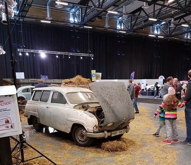 Helgen 24-26 mars fanns vi på plats på Samlarbilmässan som fanns på Conventum Arena i Örebro. En tillställning som arrangerades av tidningarna Klassiker, Grand Turismo och Moped. Man har ett tema som kallas från vrak till pärla, och det kan man sannerligen instämma i. Som sagt var vi inbjudna att ha en egen monter i utställningshallen och kunde då visa vår nya roll-up med lite bilder på olika fordon som vi har eller har haft i klubben. I garaget bland marknadssäljare fick vi en egen ruta att presentera vår klubb med ett 20-tal platser. Dom fylldes snabbt med intresserade medlemsfordon. Under helgen hade vi många intresserade som besökte vår monter och ett antal presumtiva medlemmar kom också till oss.